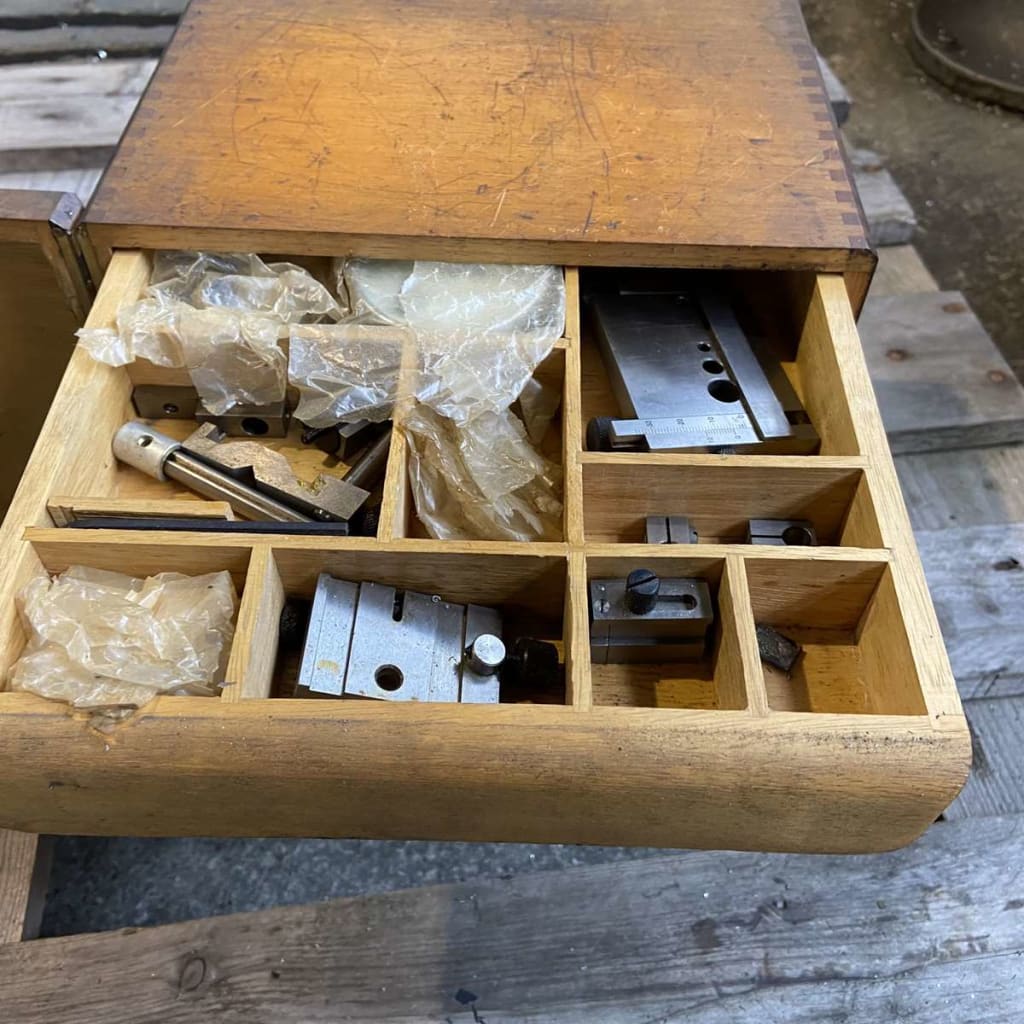 - ViewWooden cabinet with 2 doors on castorsWeight 150kg - 1060x430x950 mm - Including: 1 motorised milling machine for SCHAUBLIN 102 lathe - Various tools - Location: Route de l'Industrie 11, 1772 GROLLEY - SWITZERLAND