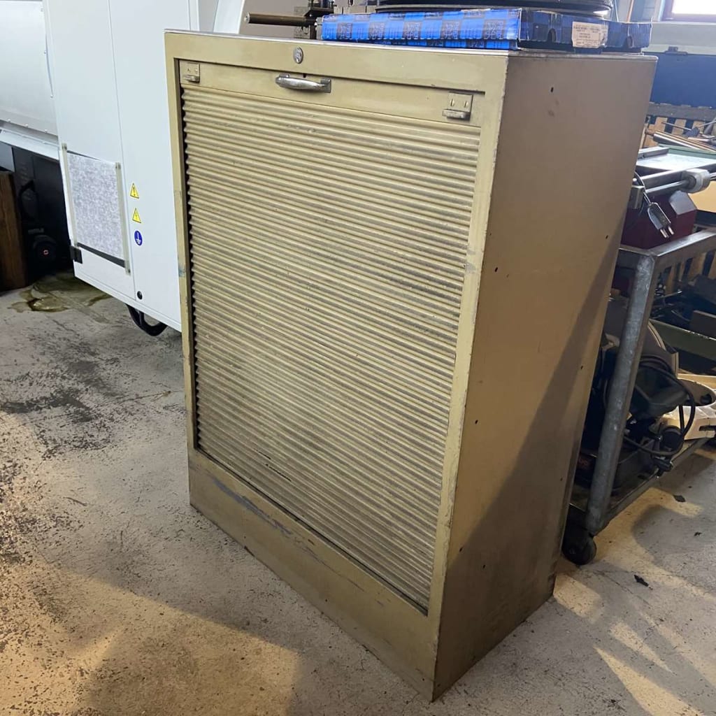 - ViewCabinet with roller door and 3 shelvesWeight 30kg - 810 x 430 x 1120 mm - Location: Route de l'Industrie 11, 1772 GROLLEY - SWITZERLAND