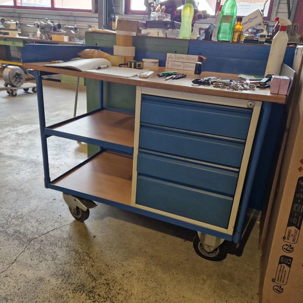 - ViewBlue trolley on castors with 4 drawersWeight 40kg - 1140x660x930 mm - Location: Route de l'Industrie 11, 1772 GROLLEY - SWITZERLAND
